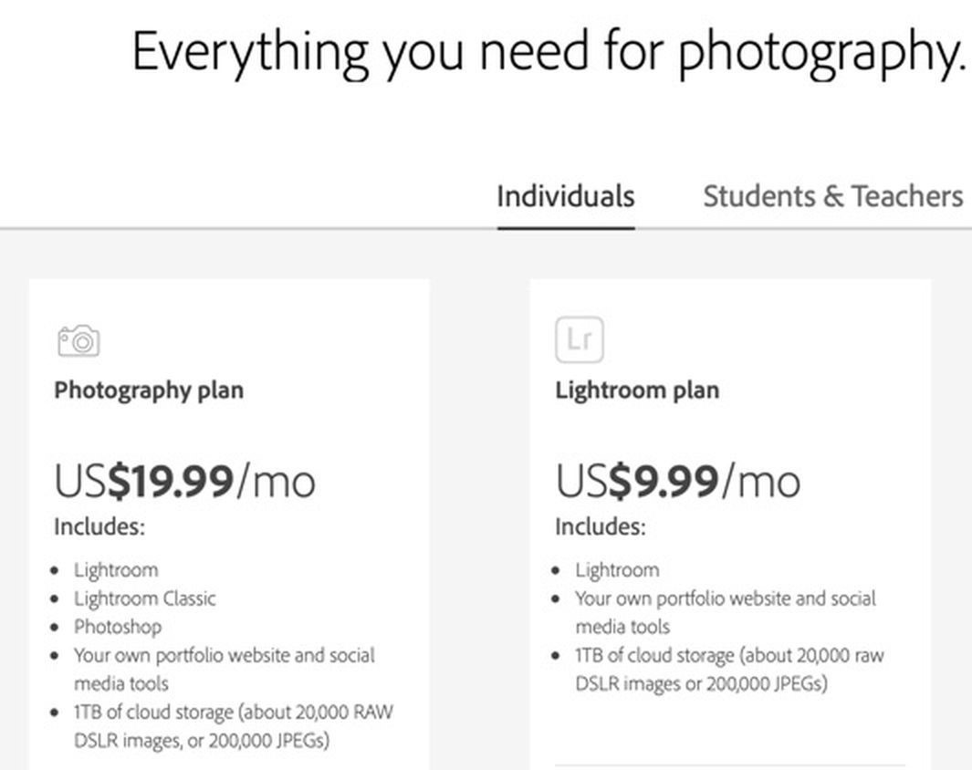 a. Photoshop and Lightroom: are both offered through a subscription service through Adobe.